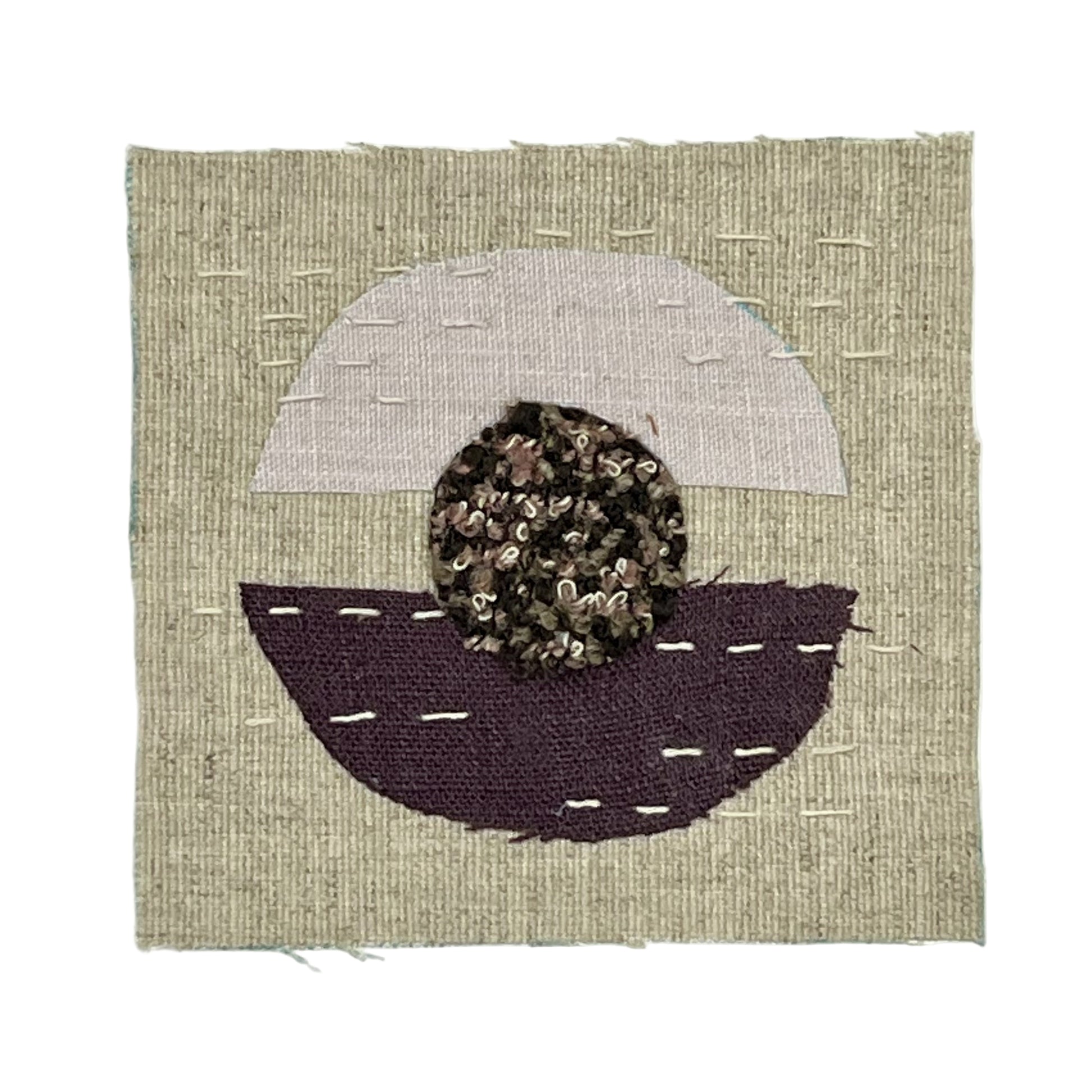 The Eclipse Balance pillow celebrates the harmony between contrast and texture through modern wabi-sabi craftsmanship. Featuring hand-applied half-moon shapes in soft lilac and deep plum, anchored by a tactile boucle circle, each element is stitched onto a natural linen canvas using traditional sashiko techniques. The hand-quilted details bring warmth and subtle irregularity, while the earthy tones and geometric composition evoke quiet balance and grounded elegance.